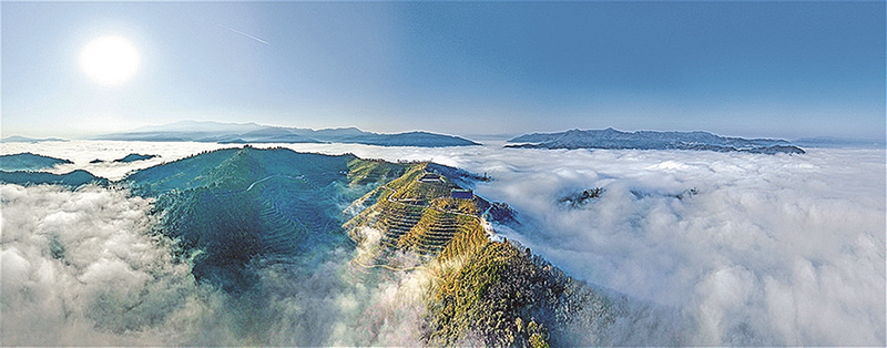 12月18日,云雾在安康市石泉县城关镇青山沟5000亩蜂糖李产业园缓缓流动,与连绵青山相映成趣,勾勒出一幅壮美的冬日画卷。