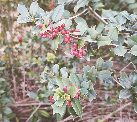 枸骨叶子四季常青、油光锃亮,仿佛涂了一层蜡,这层蜡质正是它抵御严寒的“法宝”。