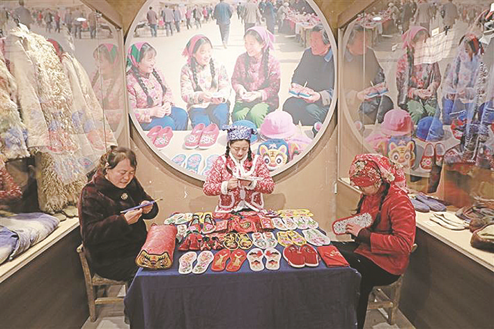 1月5日,延安市吴起县举行“百年乡愁”民俗活态博物馆暨长征书苑开馆仪式。据悉,吴起“百年乡愁”民俗活态博物馆共设农耕馆、生活馆、商贸馆、匠人馆等九大主题展区。图为1月5日,手工艺人展示刺绣技艺。