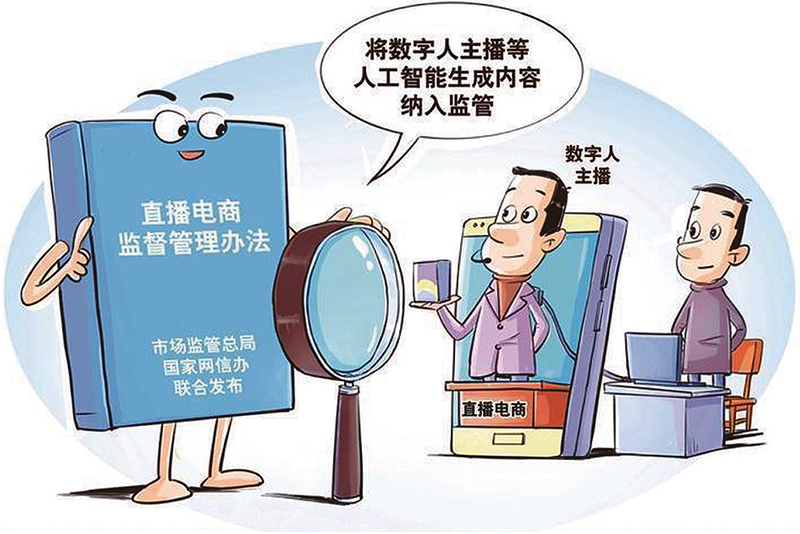 市场监管总局网监司司长朱剑桥介绍,《直播电商监督管理办法》针对直播电商行业特点,强化监管手段,将流量管控纳入监管工具箱;将数字人主播等人工智能生成内容纳入监管,避免新技术成为生成或传播虚假信息的“挡箭牌”,促进人工智能技术在直播电商领域的规范应用。