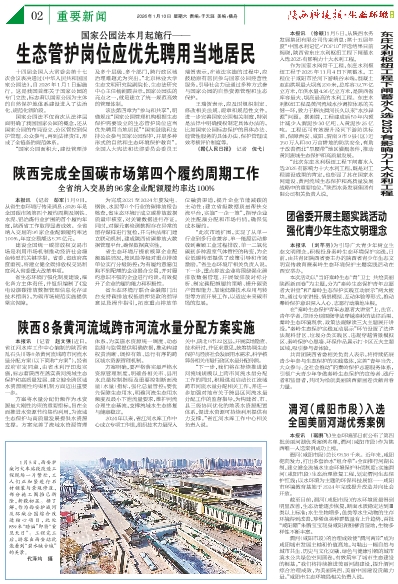 本报讯 (记者 赵文强)近日,省江河水库工作中心编制的陕西省乱石头川等8条黄河流域跨市河流水量分配方案(以下简称“方案”),经省政府审定同意,由省水利厅印发实施,标志着陕西在落实黄河流域生态保护和高质量发展、建立健全跨区域水资源刚性约束机制方面迈出重要一步。