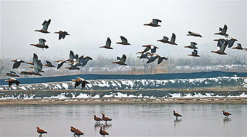 1月3日,大雪过后,在陕西黄河湿地省级自然保护区大荔段,静谧的滩涂迎来了一群灵动的“客人”。成群的候鸟或振翅翱翔,或在冰滩觅食嬉戏,清脆的鸣声回荡旷野,打破了雪后湿地的宁静。