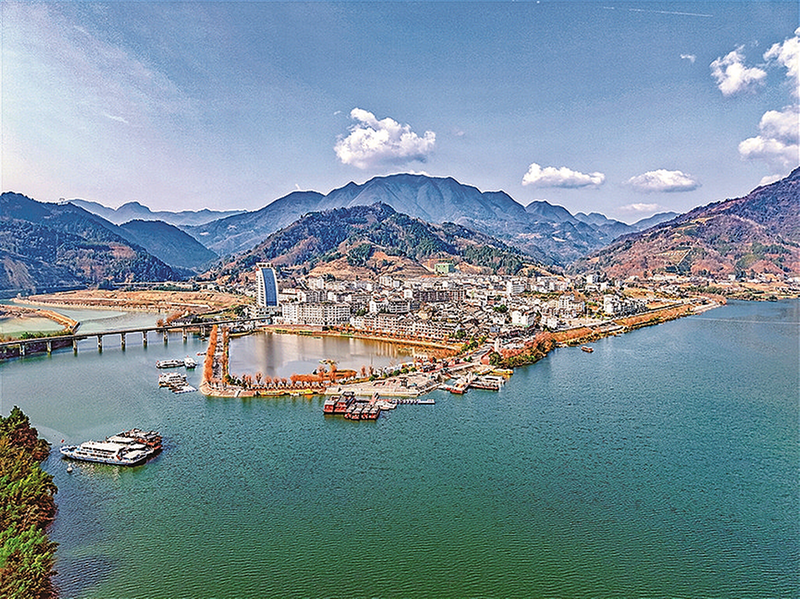 冬日的安康市石泉县后柳水乡,蓝天白云、船泊江畔、水如碧玉,共同构成一幅静谧的山水画卷。