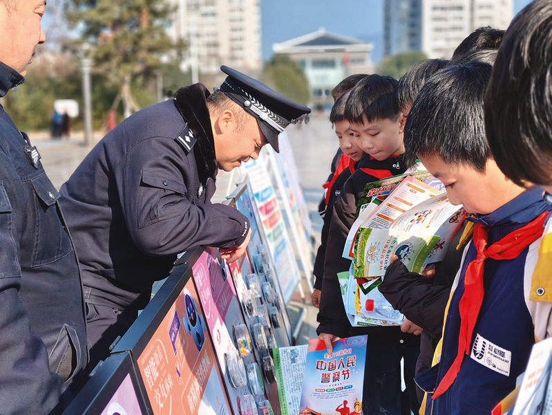 在金盾护苗工作站,民警向师生普及了自我防护、反诈知识,让法治教育在互动体验中入脑入心。