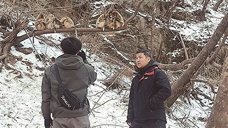 1月13日,秦岭深处的陕西周至国家级自然保护区玉皇庙金丝猴监测研究基地的树林里,数十只川金丝猴踩着积雪跃上枝头,发出“嘤嘤”的叫声。