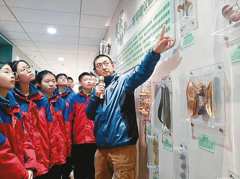 1月22日,西安市经开第三中学的师生们迎来了校园“新地标”——标本走廊。这是秦岭国家植物园与西安市经开第三中学开启的“馆校合作协同育人”创新实践,让课本里的生物知识跳出纸面,把秦岭的生态奥秘搬进校园。图为秦岭国家植物园的专家为孩子们进行现场教学。