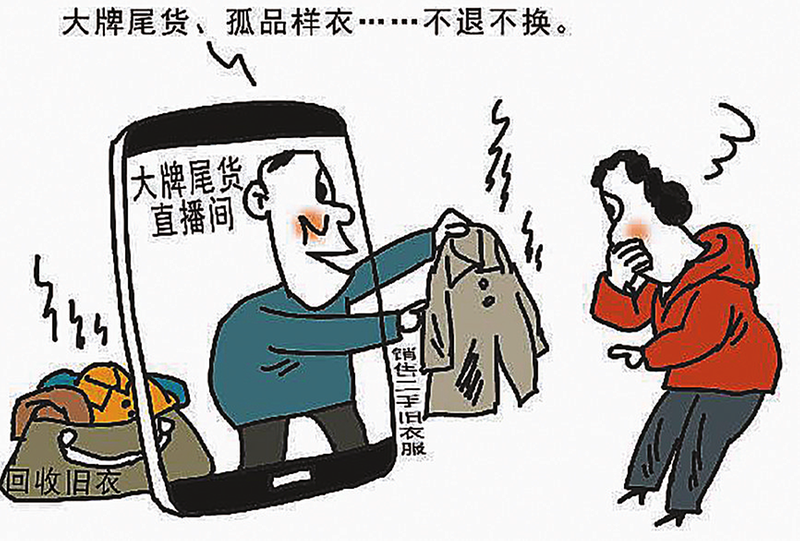 一些直播间以“大牌尾货”“孤品样衣”等名义,将零成本或以极低成本获取的二手旧衣分拣、翻新后经网络低价销售。这类衣服被商家用营销话术加以包装,并附以“不退不换”等霸王条款,看似物美价廉,实则侵犯了消费者的多项权益。