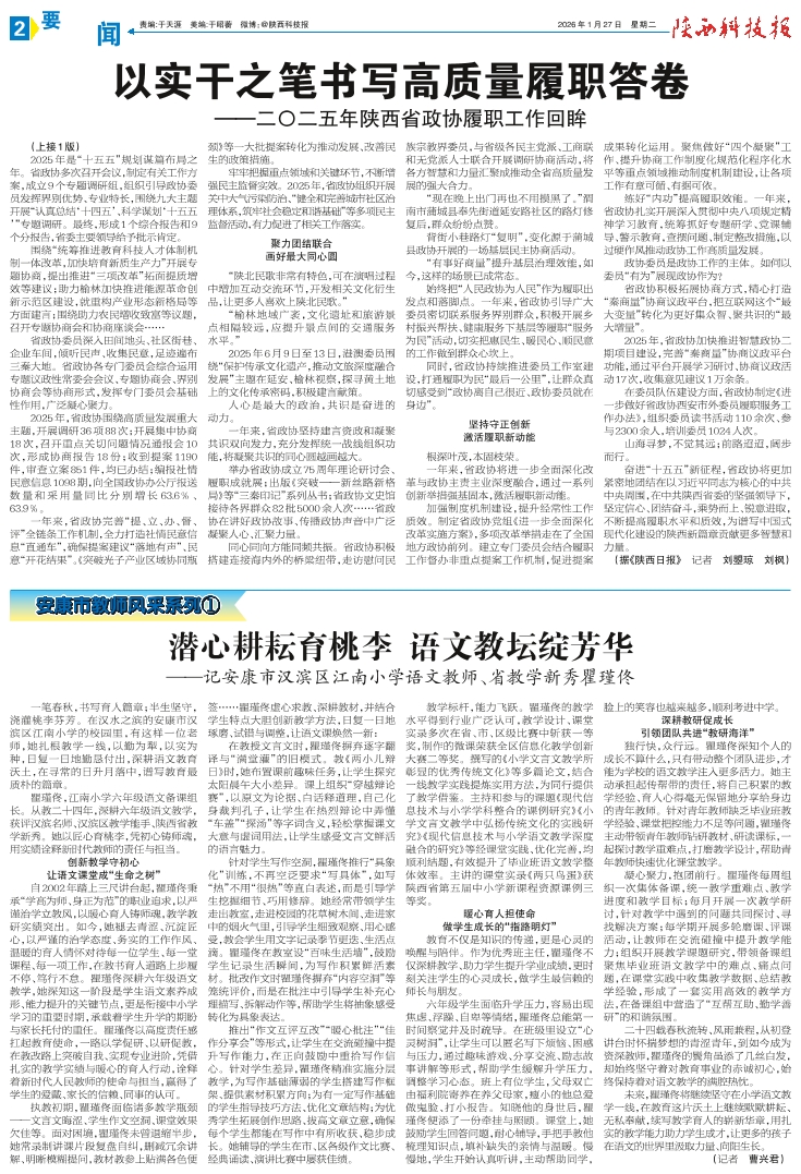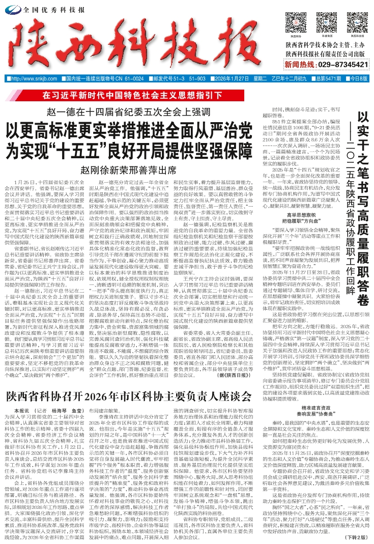 以实干之笔书写高质量履职答卷 ——二〇二五年陕西省政协履职工作回眸