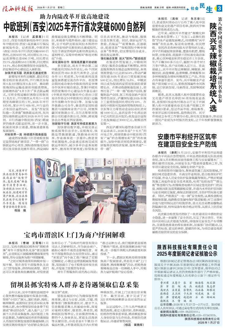 陕西科技报社有限责任公司 2025年度新闻记者证核验公示