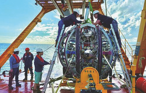 2023年2月13日,深海宇宙线天体粒子研究探测器发现了高能缪子的信号。相关证据表明,该缪子起源于在探测器附近相互作用的宇宙中微子。研究人员估计,该缪子能量约为120拍电子伏(PeV,1PeV=1015电子伏),而产生这个缪子的中微子能量甚至更高,约为220PeV,其能量约为此前探测结果的20倍。