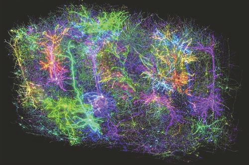 小鼠脑组织重建的1000多个脑细胞渲染图。