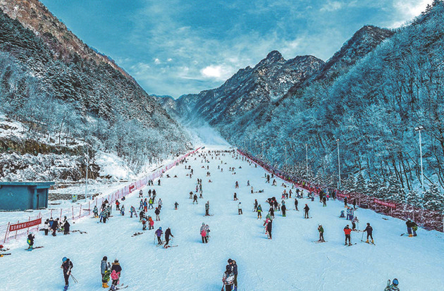 游客在西安翠华山滑雪场感受冰雪运动带来的乐趣