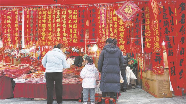 新春将至,位于西安市长安区长安广场附近的年货市场人气渐旺。图为2月1日,市民在挑选年货。
