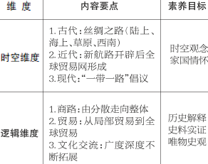 表1:选必教材3第四单元“商路、贸易与文化交流”时空—逻辑知识体系及素养目标