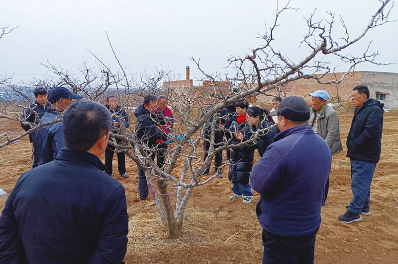 2月3日,渭南韩城市花椒研究所组织省级乡土专家一行,深入芝阳镇冶户沟村开展花椒绿色有机种植座谈与修剪技术交流活动,以精准服务为椒农提质增收赋能。图为专家正在修剪花椒。
