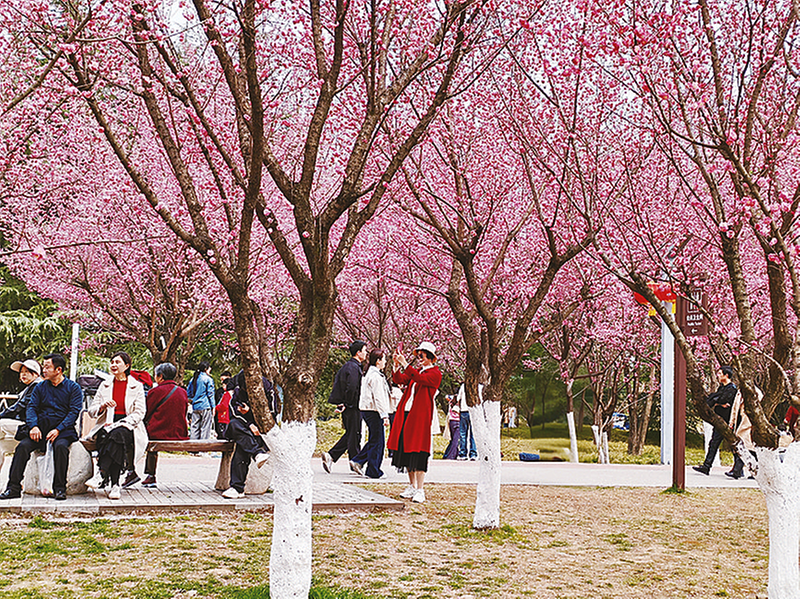 近日,汉中市天汉湿地公园上水渡广场附近五百余棵红梅树迎来盛花期,绚烂的花朵缀满枝头,暗香浮动,为马年新春增添了一抹亮眼的春色,吸引大批市民与游客前来赏花打卡。
