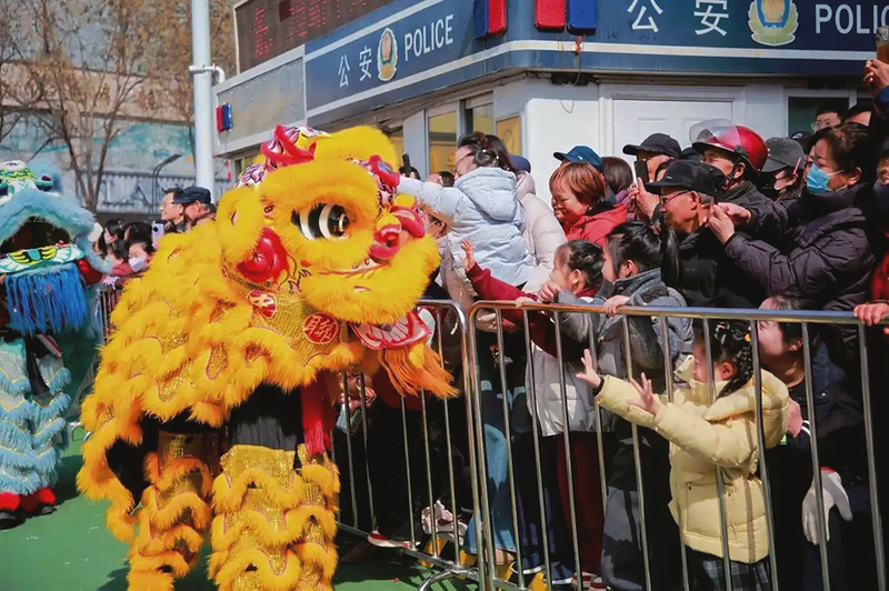 沿途,欢呼声、喝彩声此起彼伏,观众纷纷拿出手机、相机记录精彩瞬间,大人小孩脸上都洋溢着新春的喜悦,不少市民跟着队伍一路前行,沉浸式体验社火巡游的热闹。