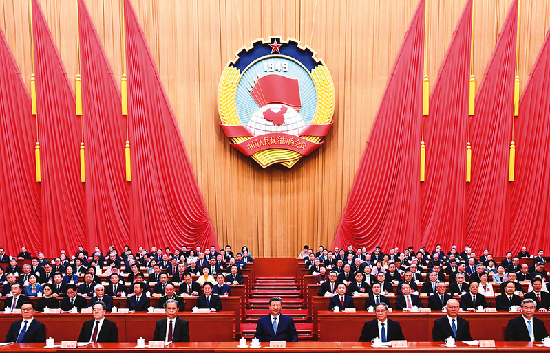 三月的北京,春启华章。人民大会堂大礼堂灯光璀璨,气氛隆重热烈。中国人民政治协商会议会徽悬挂在主席台正中,十面鲜艳的红旗分列两侧。