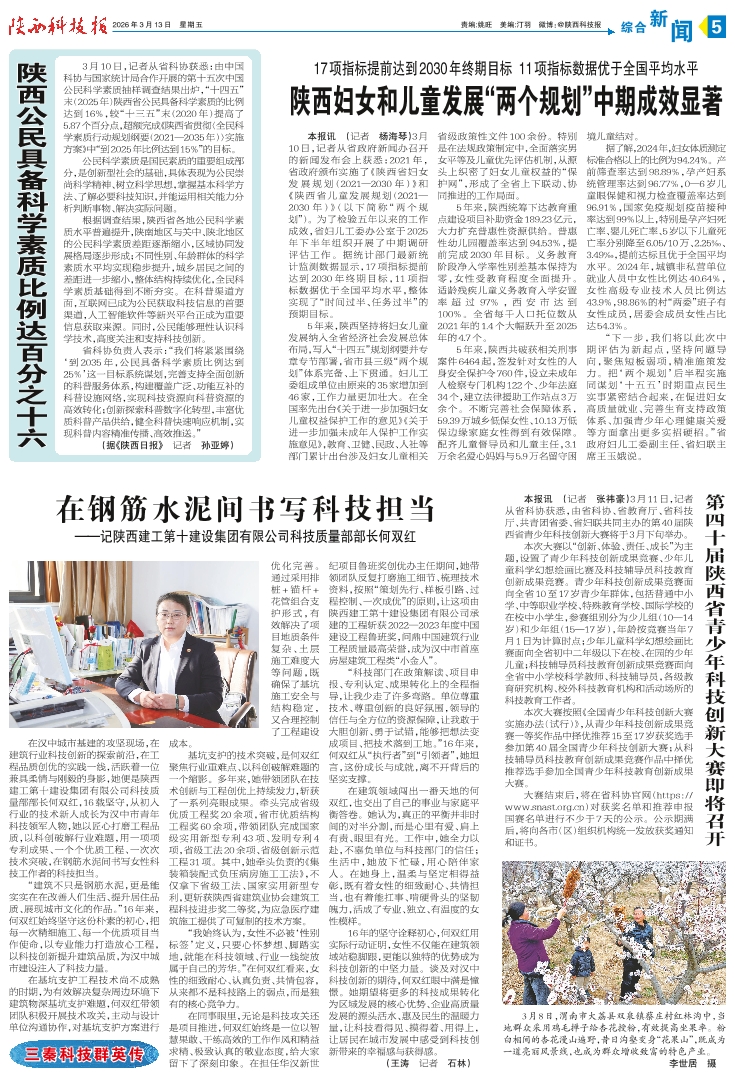 陕西公民具备科学素质比例达百分之十六