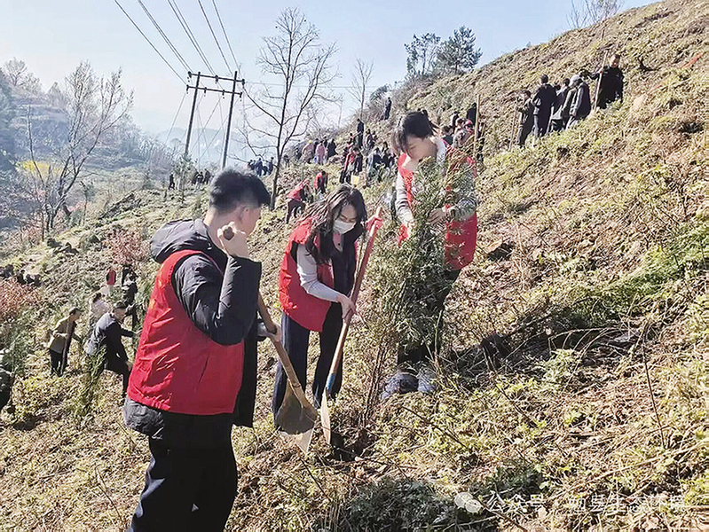 3月11日,汉中市生态环境局勉县分局干部职工参加全县义务植树活动。大家挥锹挖坑、扶苗培土、浇水定根,以实际行动践行生态文明思想,为天荡山再添新绿,助力建设绿色宜居生态城市。