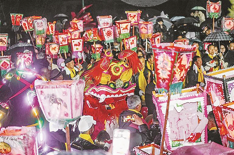 3月13日,民俗活动——排灯会在宝鸡市凤翔区陈村镇热闹上演。夜幕降临,人们手持自家制作的排灯,在锣鼓声中前往女登祠祭祀祈福。