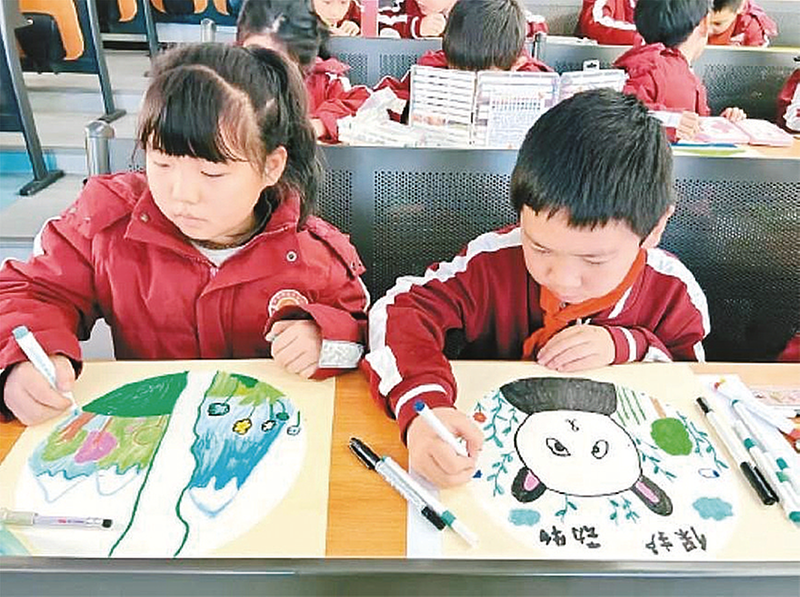 3月16日,西安市生态环境局新城分局走进西安新城华清小学开展以“‘绘’秦岭·护生态”为主题的环保宣教活动。活动通过观影、竞答、手绘等形式,引导小学生争做秦岭生态守护者。图为学生正在手绘心中的“最美秦岭”。