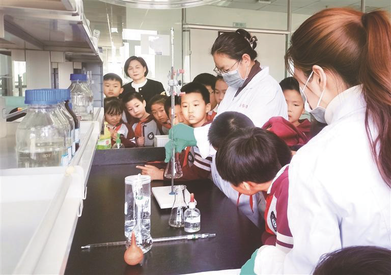 3月20日,西安市市场监管局团委举办“3·15守护成长——探秘质检实验室,解锁食品与玩具的安全密码”开放日活动,来自西安市高新第一学校三年级的学生们在现场抛出了一连串关于“安全”的问题。图为孩子们认真观看实验结果。