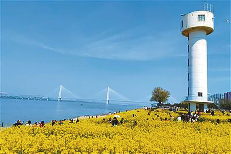 (田豆豆)武昌江滩白塔下的油菜花海。