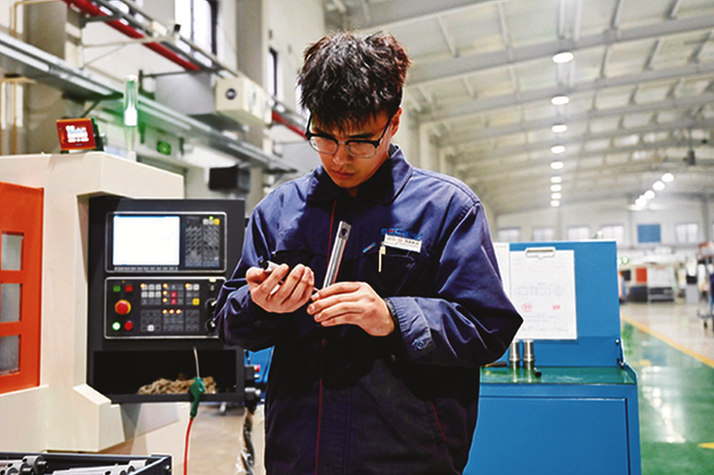 近日,陕西电子西北机器有限公司成功研制出高精度大推力二级电动缸并交付用户,攻克了“卡脖子”技术,为我国高端装备核心部件自主可控增添了硬核支撑。图为工人检验新产品的零件精度。