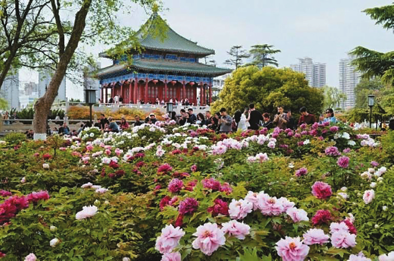 4月6日,西安兴庆宫公园内牡丹花迎来盛花期,成片牡丹竞相绽放,花香怡人。市民游客纷至沓来,赏花拍照,尽享春日美景。
