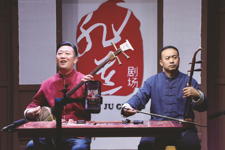 榆阳区文化馆非遗展示馆内,榆阳书场的陕北说书专场常常座无虚席。艺人怀抱三弦、腿绑甩板,用高亢质朴的陕北方言演绎民间故事,唱腔时而激昂豪迈、时而婉转深情,韵律十足、扣人心弦,让现场观众沉浸式感受陕北文化的独特魅力。“这是我第一次现场听陕北说书,节奏欢快、神态生动,里面藏着太多本土文化内涵,太吸引人了。”来自内蒙古的游客焦筠哲沉浸其中,连连称赞。